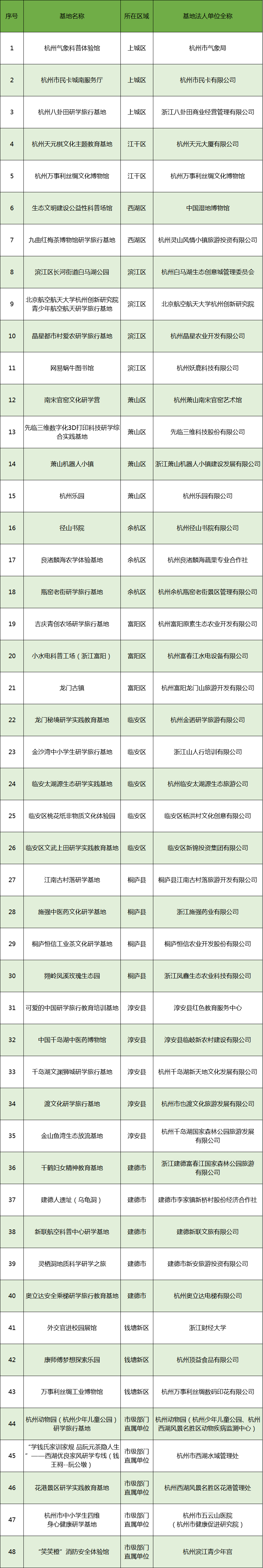 2020年杭州市中小學(xué)生研學(xué)旅行基地名單