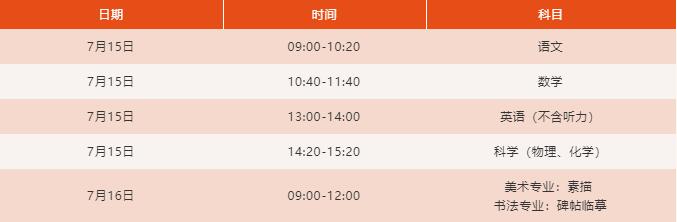 7月15日全天(文化)、7月16日上午(專業(yè))