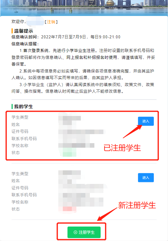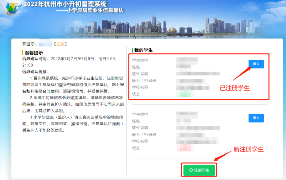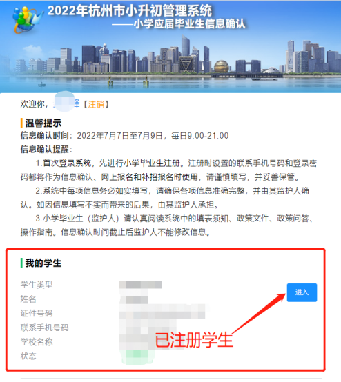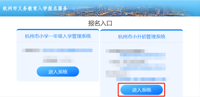 進(jìn)入杭州市小升初管理系統(tǒng)。