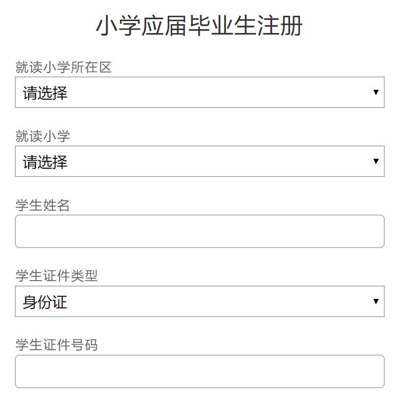 選擇就讀小學(xué)所在區(qū)和就讀小學(xué),填寫學(xué)生姓名及證件號碼。