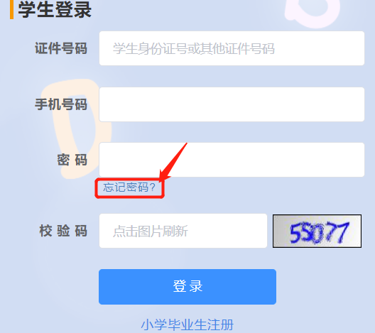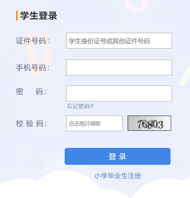 填寫學(xué)生證件號碼、聯(lián)系手機(jī)號碼、登錄密碼后點(diǎn)登錄。