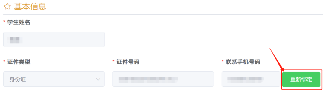 進(jìn)入系統(tǒng)后,點(diǎn)擊【重新綁定】錄入新聯(lián)系手機(jī)號碼。
