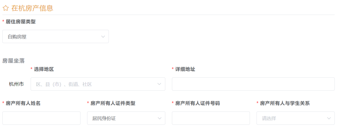 居住房屋類型選擇為自購房屋,還需要填寫房產(chǎn)所有人相關(guān)信息。