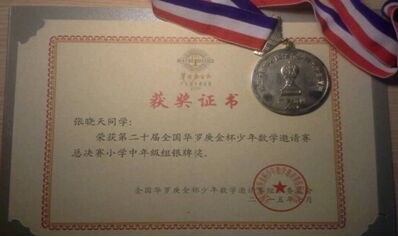 《杭州超限教育中心瑪林2015年8月26日訊》張曉天獲獎了!”班級群里面,我們又看到了一則令人興奮的消息。育才附小新502班張曉天同學(xué),在第二十屆華羅庚金杯少年數(shù)學(xué)邀請賽全國總決賽中獲獎了。