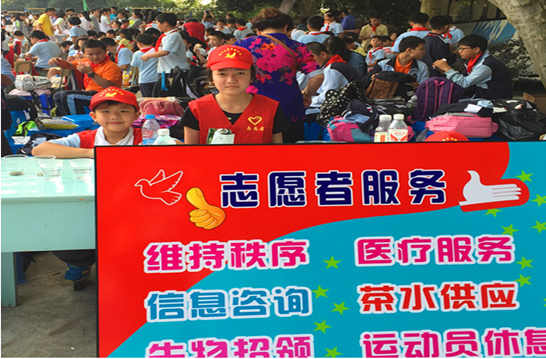 團(tuán)總支、大隊(duì)部共組織了80多名志愿者參加了第二十二屆校運(yùn)會(huì)的志愿者服務(wù)工作。為保證服務(wù)質(zhì)量,賽前校志愿者協(xié)會(huì)根據(jù)同學(xué)們不同的意向和特長,對志愿者工作進(jìn)行了詳細(xì)的分工,并明確了各崗位不同的工作要求。校運(yùn)會(huì)上,全體志愿者們用良好的形象、飽滿的熱情、文明的語言、周到的服務(wù),為運(yùn)動(dòng)員和裁判員們提供了最熱情的后勤保障服務(wù),創(chuàng)造了最優(yōu)質(zhì)的比賽環(huán)境,圓滿地完成了本次志愿者服務(wù)工作。