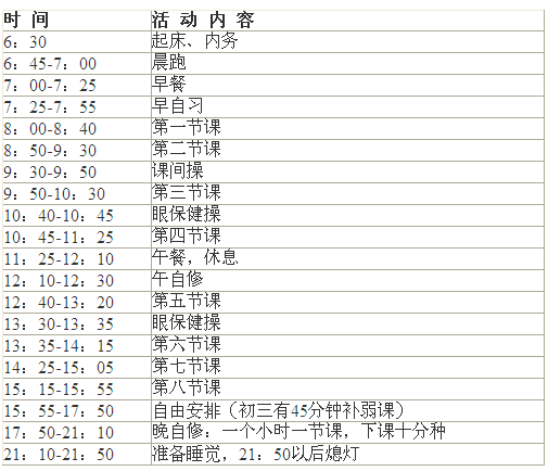 杭州文瀾中學(xué)作息時(shí)間表