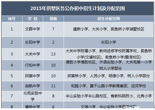 2015年杭州拱墅區(qū)公辦初中招生計劃及分配范圍