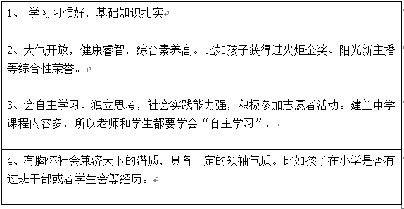 《杭州超限教育中心李林2015年12月31日訊》建蘭中學一直隸屬于杭州一流初中名校,培養(yǎng)了一代代優(yōu)秀學子成長成才。但對于建蘭中學招生上,你知道什么樣的孩子比較受到學校的喜歡?帶著這個問題,我教育機構(gòu)根據(jù)歷年的輔導經(jīng)驗和校方的官方回答,詳細介紹如下: