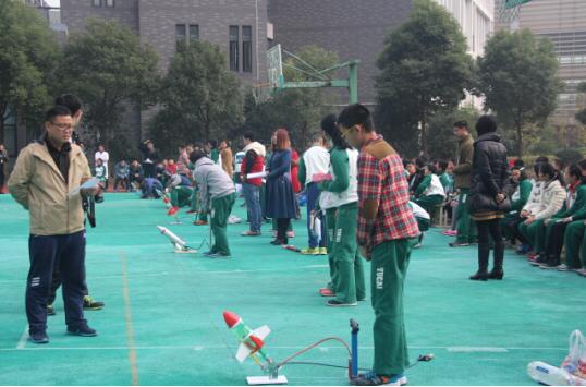 《杭州超限教育中心李林2016年1月19日訊》 杭州東南中學(xué)第二屆科技節(jié)以“科技改變生活,東南成就夢(mèng)想”為主題,不僅有水火箭比賽、開(kāi)放實(shí)驗(yàn)室活動(dòng),還有“未來(lái)之星”展示活動(dòng)。水火箭比賽中,同學(xué)們發(fā)揮聰明才智設(shè)計(jì)制作的水火箭最終按照飛行距離決出了一、二、三等獎(jiǎng)。在開(kāi)放實(shí)驗(yàn)活動(dòng)中,每位同學(xué)完成了8個(gè)以上不同的實(shí)驗(yàn),既增強(qiáng)了同學(xué)們學(xué)習(xí)科學(xué)知識(shí)的興趣,也鍛煉了動(dòng)手能力。在“未來(lái)之星”展示活動(dòng)中,同學(xué)們用非凡的創(chuàng)造力和強(qiáng)大的動(dòng)手能力,展示了一件件讓人眼前一亮的小發(fā)明、小制作和趣味生動(dòng)的小實(shí)驗(yàn)。