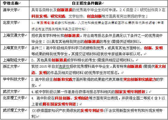 四、我國部分重點(diǎn)大學(xué)自主招生條件摘錄。