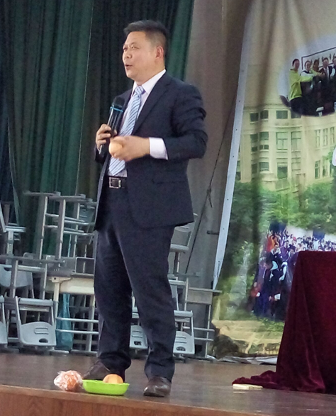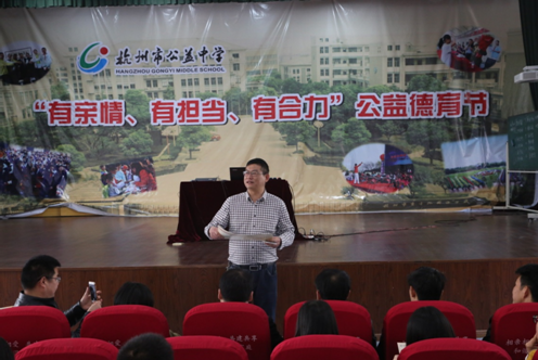 會上,杭州市陽光男教師,公益中學初一(8)班班主任王曉巍老師以《教師人格魅力淺談》切入話