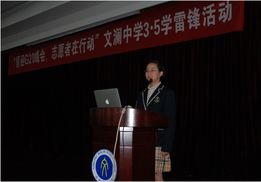 在各班匯報結(jié)束后,學生處方獻忠老師教育同學們:我們最終不看重社會實踐活動具體做了什么,而重視我們在活動中的收獲,演講匯報只是形式,個人的成長也不分孰優(yōu)孰劣,我們要把收獲與責任謹記在心,才能做好更優(yōu)秀的主人翁,在國家未來的道路上弘揚中華民族的精神,踐行文瀾的“十六字”,樹立時代新風。G20在即,文明迎接G20需要我們,每一天的踐行雷鋒精神更需要我們,“路漫漫其修遠兮,吾將上下而求索”,社會實踐的路還很長,我們還在路上。