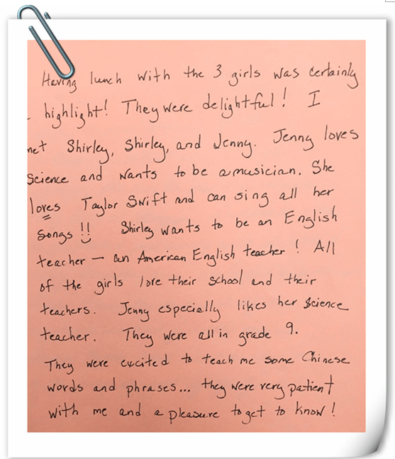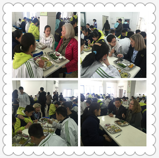 《杭州超限教育中心李林2016年3月15日訊》 2016年3月14日午餐時(shí)間,公益中學(xué)的學(xué)生餐桌上迎來(lái)了五位美國(guó)校長(zhǎng)。餐桌上笑聲不斷,同學(xué)們一邊享受美食一邊用英語(yǔ)和校長(zhǎng)們談天說(shuō)地,從自我介紹到興趣愛(ài)好,從人文地理到學(xué)科學(xué)習(xí),似乎有聊不完的話題。同學(xué)們絲毫沒(méi)有顯露膽怯和不自信,這給美國(guó)友人們留下了積極、陽(yáng)光的印象。幾位美國(guó)校長(zhǎng)在交流會(huì)上不停地稱贊公益人流暢的口語(yǔ)和充滿正能量的個(gè)性,并在結(jié)束時(shí)紛紛要求和同學(xué)們合影留念。餐桌上多了公益孩子們燦爛的笑容,這也是幾位遠(yuǎn)道而來(lái)的貴客難忘的回憶。