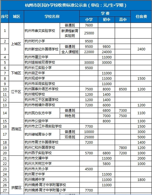 《杭州超限教育中心李林2016年04月06日訊》忙完每年的小升初前期招生工作,另一個方面家長較為關心是事情無非就是各個學校的收費情況,現整理相關杭州各個民辦學校學費情況如下: