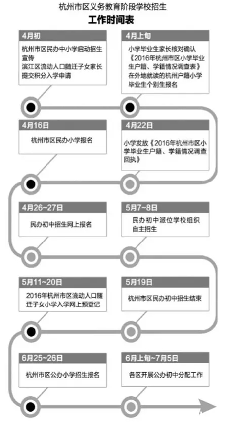 《杭州超限教育中心李林2016年04月08日訊》 隨著小升初越來(lái)越緊張,從四月份開(kāi)始,學(xué)校的小升初時(shí)間安排表很為關(guān)鍵。下圖是2016年小升初工作時(shí)間安排表圖解。