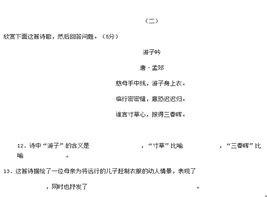舉例去年語文試卷如下(部分真題):