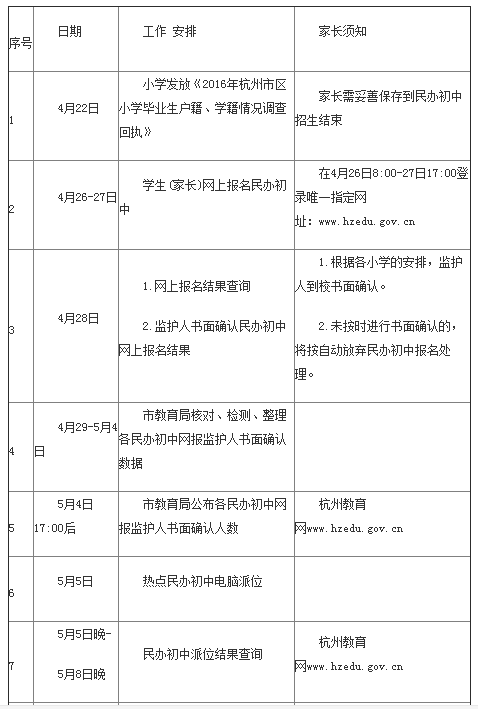 《杭州超限教育中心李林2016年04月22日訊》近日,杭州教育局發(fā)布了2016年杭州城區(qū)各個民辦初中的招生時間安排表,各位孩子家長請予以及時掌握并咨詢,為孩子的擇校提供好的信息準(zhǔn)備。