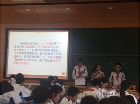 項老師由貝多芬的生平導(dǎo)入,引領(lǐng)孩子們一點一點地走近貝多芬。在課前預(yù)學(xué)的基礎(chǔ)上,整堂課的核心環(huán)節(jié)是小組合作,探究“我眼中的貝多芬”。孩子們抓住文中的外貌、語言、神態(tài)、動作等描寫,結(jié)合組內(nèi)最有共鳴和感觸的語段進行解讀,同時揣摩人物的心理,把握情感,朗讀演繹。在小組展示的過程中,組與組之間相互點評、補充、質(zhì)疑、碰撞,生生互動精彩,教師注重傾聽與回應(yīng),適時穿插介入,引導(dǎo)學(xué)生抓住重點語段重點辨析,進一步深入地探究文本。