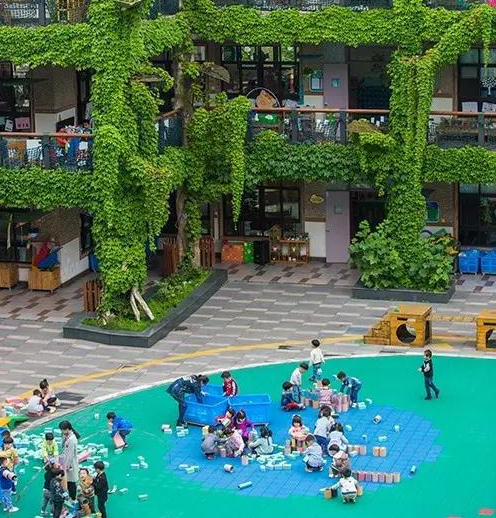 從圖片上看,樓外布滿各種爬藤植物,遠看就像一座巨大的綠房子。一股大自然的清新氣息撲面而來,美得一塌糊涂!這所幼兒園照片讓許多人心生羨慕
