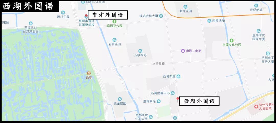 西湖外國(guó)語(yǔ)學(xué)校位于杭州城市主干道古墩路上,浙商財(cái)富中心對(duì)面,南側(cè)近蓮花街,東側(cè)是荷花苑小區(qū)。