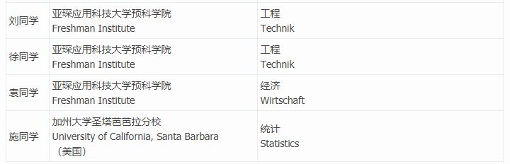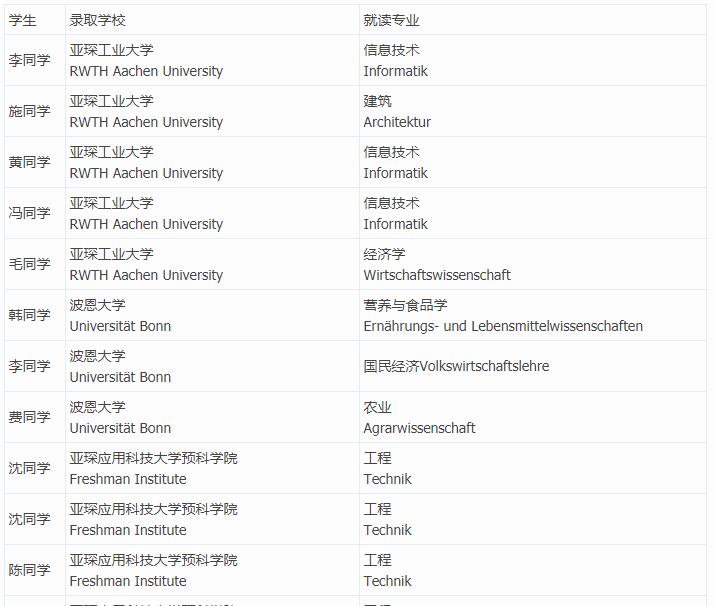 英特外國語外語特長實(shí)驗(yàn)班(德國方向)首屆畢業(yè)生全部順利畢業(yè),其中50%的學(xué)生提前進(jìn)入德國精英大學(xué)本科(亞琛工業(yè)大學(xué)和波恩大學(xué)),另外50%的學(xué)生按原學(xué)制全部順利進(jìn)入德國亞琛應(yīng)用科技大學(xué)預(yù)科學(xué)院學(xué)習(xí),其中一位同學(xué)選擇美國加州大學(xué)圣塔芭芭拉分校學(xué)習(xí)。