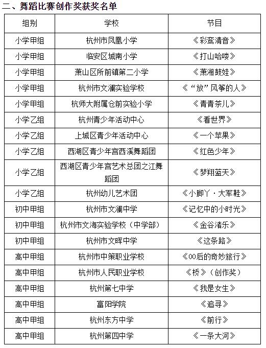附件:2019年杭州市中小學(xué)生戲劇、舞蹈比賽優(yōu)秀創(chuàng)作獎(jiǎng)獲獎(jiǎng)名單