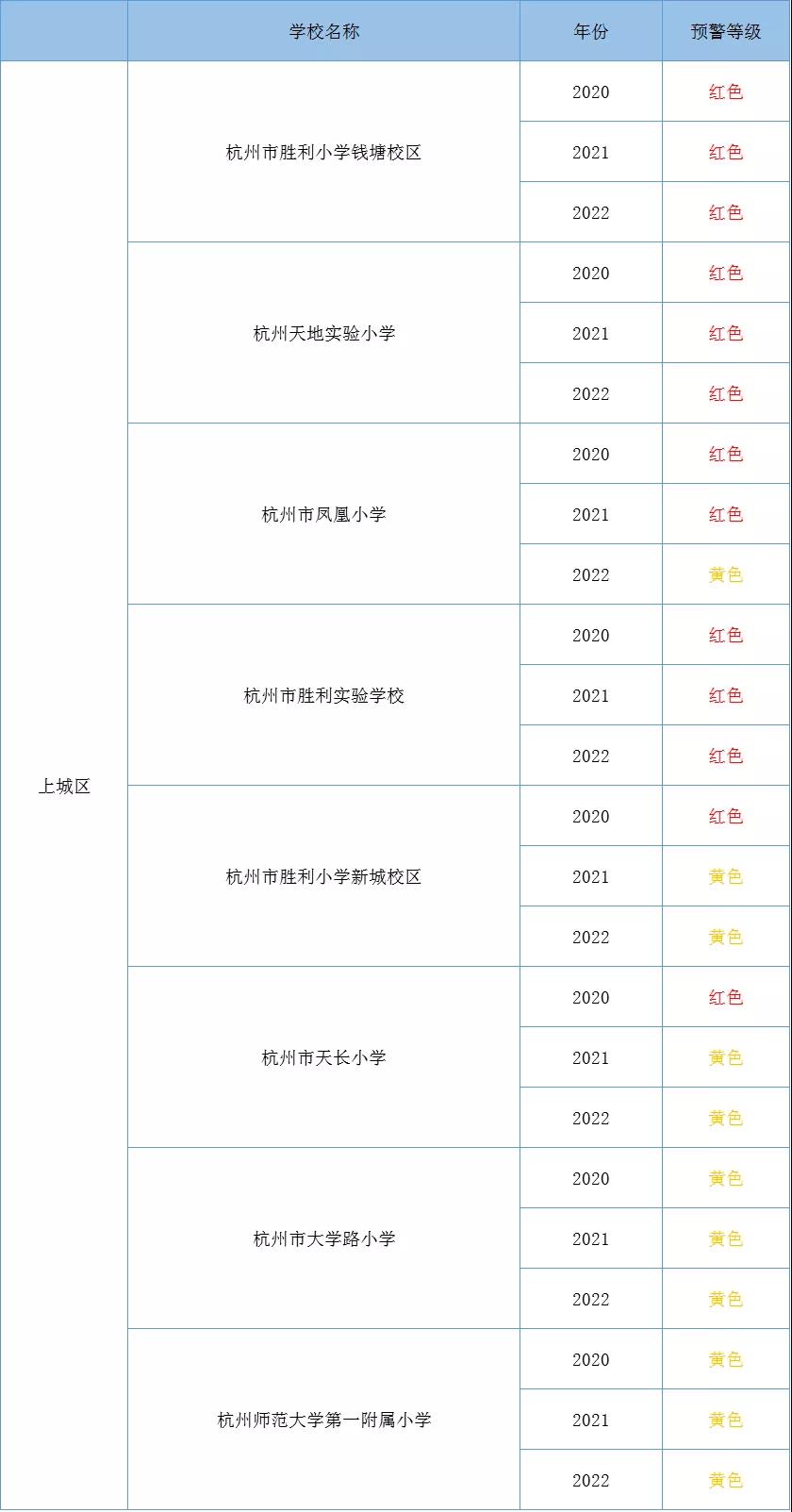 紅色預(yù)警,表示學(xué)區(qū)內(nèi)適齡戶籍兒童人數(shù)達(dá)到或超過學(xué)區(qū)小學(xué)常態(tài)招生計(jì)劃數(shù)100%。